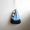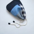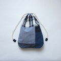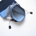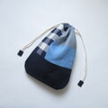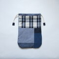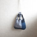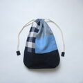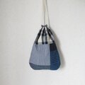 ほんのりまるくて細長いきんちゃく パッチワーク、ネイビー 2