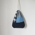 袋の縁は紺色のコットンリネン、内布は水色のコットンです。