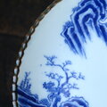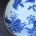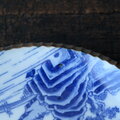 【特価¥1800→¥1000】青い山水の絵◆伊万里 印判イゲ皿 中皿 骨董/antiques 器 丁寧な暮らしに。大正~昭和初期