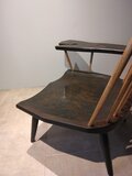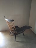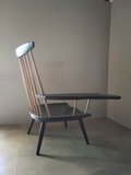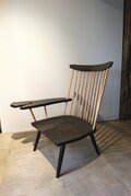耳付きの一枚板を肘掛けに使った贅沢なラウンジ チェア です。