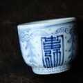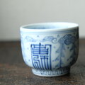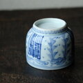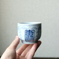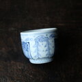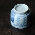 線描きで素敵◆花と漢字。伊万里 染付線描猪口 骨董・antiques 丁寧な暮らしに。江戸末期