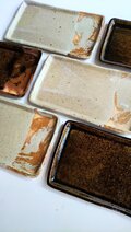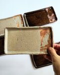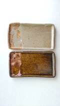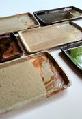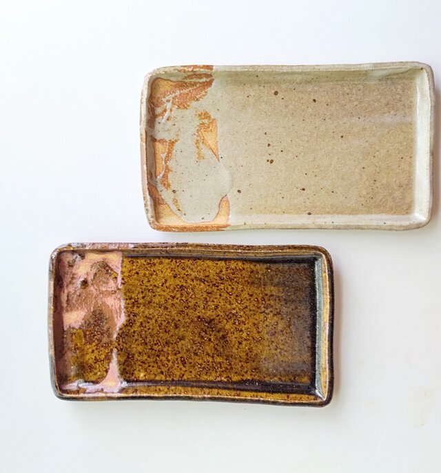 皿の一部を刷毛で釉薬を施して、土の味わいを感じられる長方形の皿。