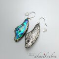 青みの強い鮑貝の螺鈿細工とプラチナ箔のフックピアス。