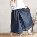 風が通り抜ける♡夏のリネンパンツ・さらふわリネン・軽くて涼しい・ダークネイビー・すっきりシルエットのガウチョパンツ・丈詰め可