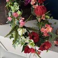 ハイビスカスとグリーンを合わせ大きなリースを制作しました。
