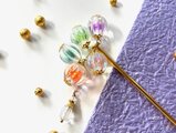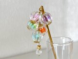 飴玉の様な2トーンカラービーズを3連にしてかんざしを制作しました。