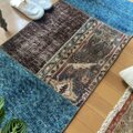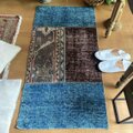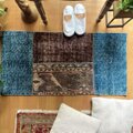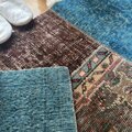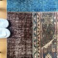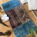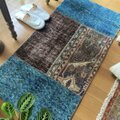 54×109 ブルーオーバーダイ×ブラウン パッチワーク トルコヴィンテージラグ