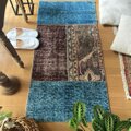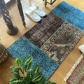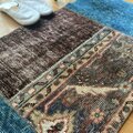 サッパリとした夏カラー、サイズ感がかわいい、トルコヴィンテージラグのパッチワークタイプ(55×109cm)