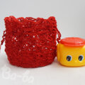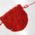 発色の美しい極細サマーヤーンを透かし編みの巾着に仕上げました。