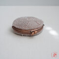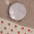 3mmのビーズをひとつぶづつ、まぁるい編み地全面に編み込みました。