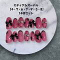 ミルクピンクにマグネットの輝き、ブラックで引き締めつつ、リボンやドット、花柄の遊び心を指先にのせました。
