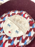 裏側はエンジ色と同じトーンのスクエアの時模様入り