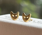 K24 純金猫フェイススタッドピアス◇ Pure Gold Cat Face・溶接なし(片耳分~)