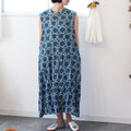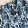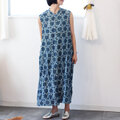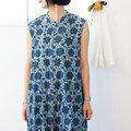 ブロックプリントコットンクリンクルワンピース【インディゴ花柄】