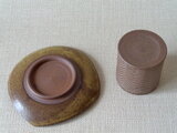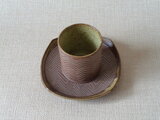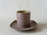 落ち着いた土の風合いに象嵌模様が美しく映えるカップとソーサーのセットです。