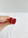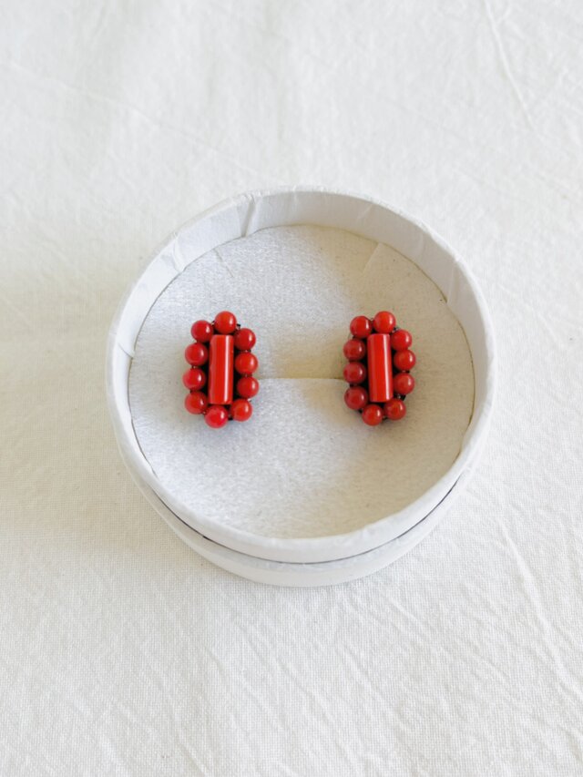 ライン型の赤珊瑚の周りを、同じく小粒の可愛らしい赤珊瑚を一粒づつ刺繍しました。