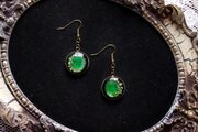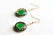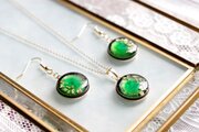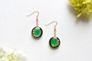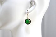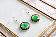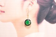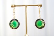 黒を背景に二種類のグリーンが輝く、鮮やかなカラーリングに魅入ってしまうピアス。