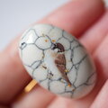 天然石ハウライトと雀、金箔のポニーフック 帯留め ブローチ