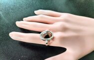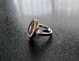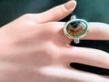 光にかざすと透明感が際立ちますが指にはめると全体的に落ち着いた色合いになるので着けやすいと思います。