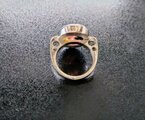 昨夜、帰宅したら、件の指輪が届いていました。 スターバーストは飛行石の雰囲気があると聞いていても、実際見ると、セラフィナイト寄りのラピスラズリと言った感じがしますし、空にも海にも見えて来ます。 人造宝石とは言うものの、将来下手すると幻の石になる可能性有りと聞いたもので、尚更購入決定した次第です。 石も造形も実にユニークで、これから大活躍の予感がします。 有難うございます。