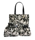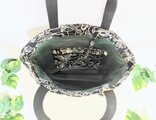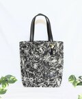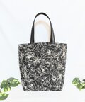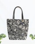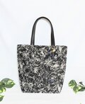 黒地の綿リネン生地に大きな薔薇の花柄(ローズガーデン柄)、落ち着いた大人のトートバックです。