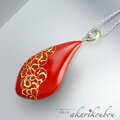 【sv925】漆ペンダント 洋梨型 Pear-shaped 赤 純金箔 漆アクセサリー
