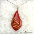 金沢の純金箔で唐草紋様を箔押しした朱漆塗り洋梨型のペンダント