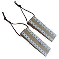 天然杢ナラ無垢材を使用し自然オイル塗装をした木に和風ブラウンの紐をつけています。