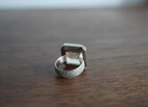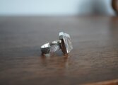 リングのサイズを伺ってから石留をいたします。(写真は石留をする前の状態です。縁を倒して覆輪留にいたします)