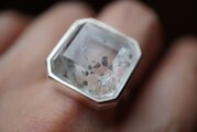 白鉄鉱が散らばった層を内包した水晶のリングです。