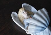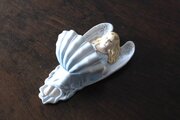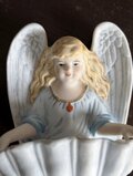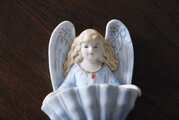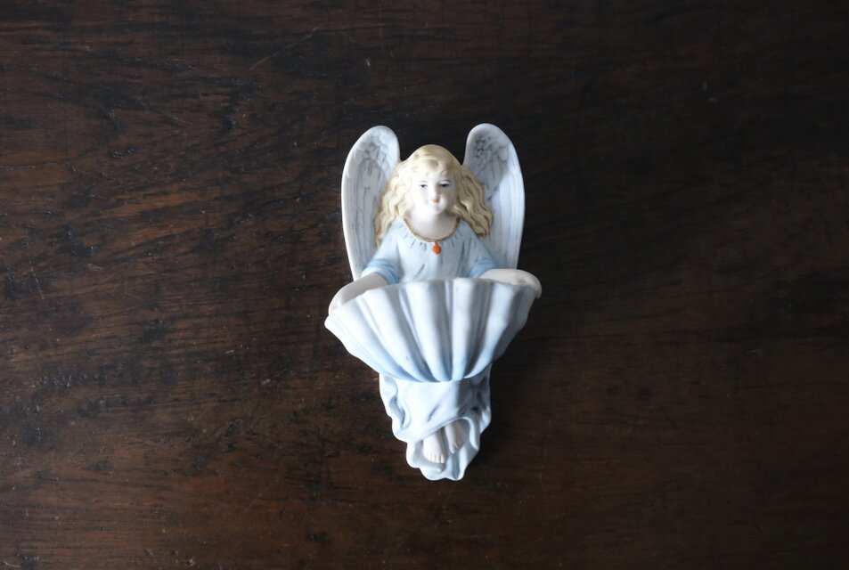 ビスク製 天使 ベニティエ 聖水盤 水色 フランス アンティーク 0502291