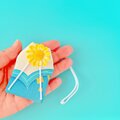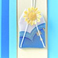 ひまわりの力強さと、海辺のきらめきを映したお守り袋。