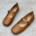 【受注製作】丸トウパンプス シューズ 編み込み 手製牛革レザー EU891