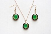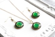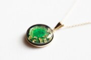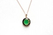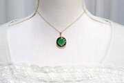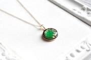 黒を背景に二種類のグリーンが輝く、鮮やかなカラーリングに魅入ってしまうペンダント。