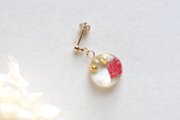 一つには葉っぱと白いお花、一つには赤いお花とシェルを閉じ込めたアシンメトリーなデザインが遊び心のあるピアス。