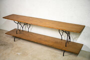 送料込【一点もの・無垢古材】国産栃の木×鉄のTVボード|アイアン脚・200cmローボード|古材家具