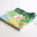 布合わせを楽しむパッチワークの巾着ポーチ