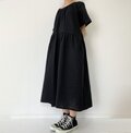 ふんわりダブルガーゼ*ブラックのゆったり半袖ラグランワンピース*コットン100%*シンプル無地*ポケット付き