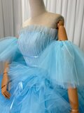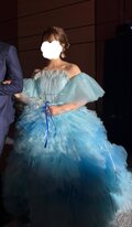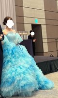 実例写真!カラードレス ブルー もこもこドレス ふわふわ袖 リボン グラデーション 披露宴/花嫁 可愛い