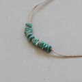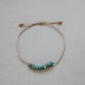 不揃いなターコイズをつないだ細紐のブレスレットです。