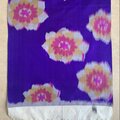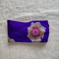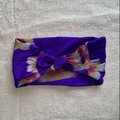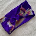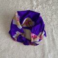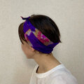 銘仙のVintage Kimono地 青紫地にピンクの花柄 結ぶタイプのヘアバンド
