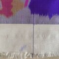 タテに筋が入った個所(写真数枚載せています)がありますが、織りの段階で最初からタテ糸が配色になっているもので、織りキズではありません。
