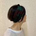 ヘアバンド 大島紬 Vintage Kimono地 赤×緑の積み木柄