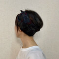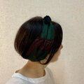 ・頭上で結んだり(写真のように)、または、後頭部(うなじ側)に結び目を持ってくると長めのヘアスタイルにも合わせやすくなります。