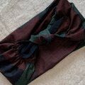 着物を作った反物の残った部分を最大限に使用しているので、結ぶパーツの裏面は黒の丹後縮緬(ちりめん)を配色に使用しています。