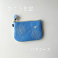 刺繍革パスケース『ひこうき雲』つゆくさブルー(ヤギ革&牛革)