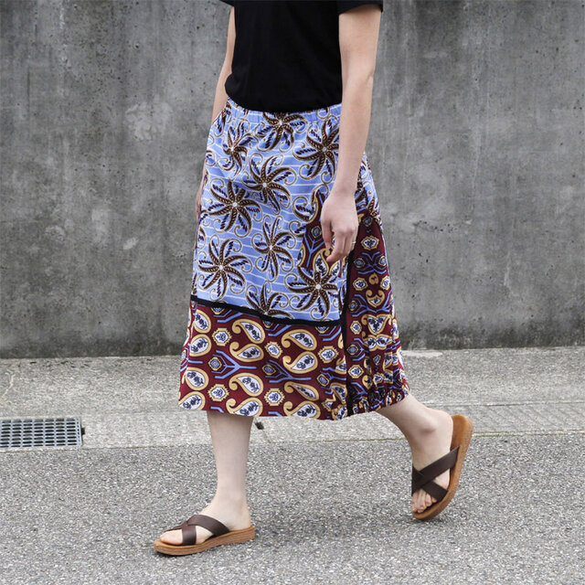 水通しをしたカンガから制作しているので、最初からナチュラルな風合いを楽しんでいただけます。使い込むほどより柔らかな肌触りになってゆくスカートです。