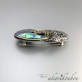 螺鈿ブローチ 青貝螺鈿 純金箔 プラチナ箔 透かし彫り 漆アクセサリー
