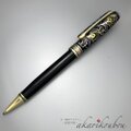 黒漆をベースに孔雀羽紋様を純金箔・プラチナ箔で加飾した金沢漆器のボールペン。