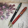 漆・螺鈿ボールペン 孔雀羽紋様 黒漆 純金箔 プラチナ箔